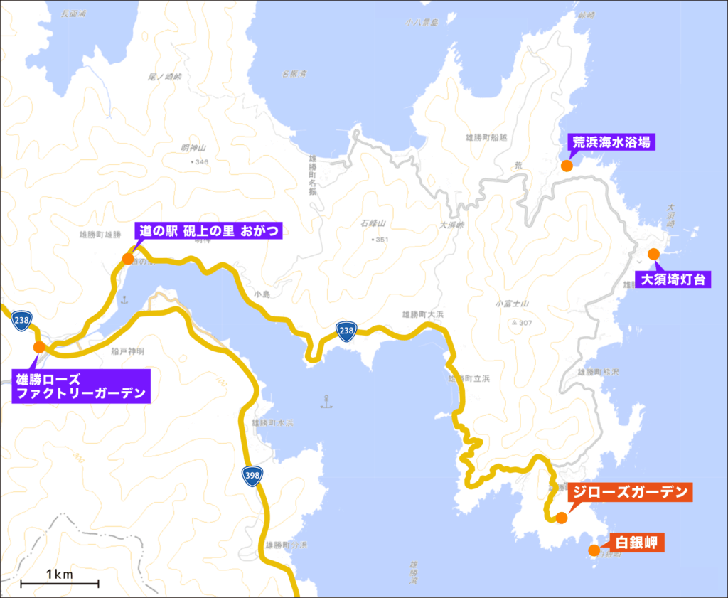 道の駅 硯上の里 おがつから約10km、県道238号を経由して約16分です。