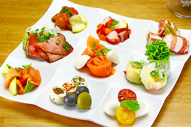 A or B冷製(6マスの食器 or 重箱などで提供) - メイン1(冷菜)・・雄勝産の地魚